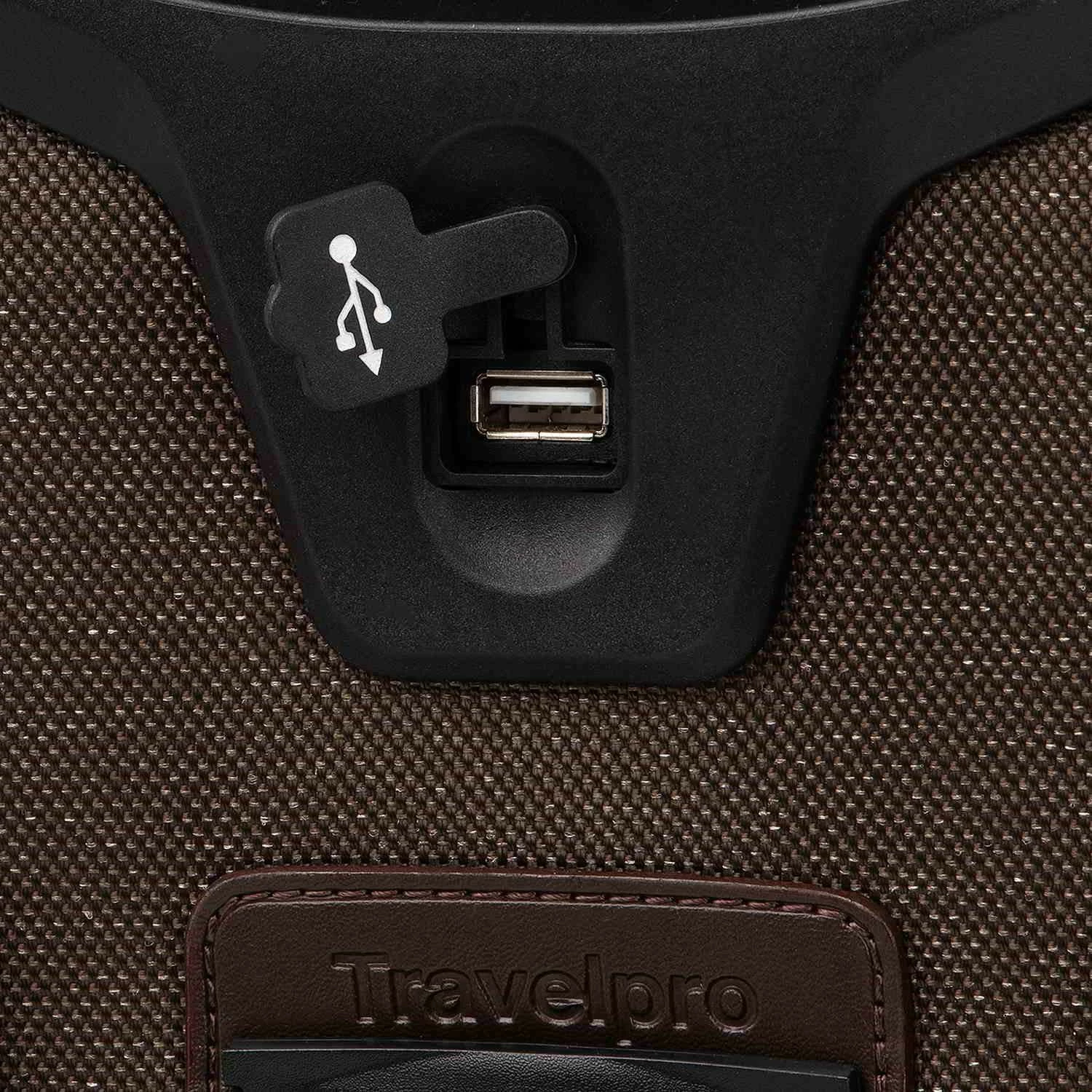 The Platinum® Elite International Expandable Carry-On Rollaboard® suitcase is specially designed to accommodate international airline requirements for carry-on luggage. Stay connected and FAA-compliant with a built-in USB port that lets you power up on the go and a dedicated power bank pocket for easy storage and removal of your back-up battery. The luxurious styling of this softshell luggage includes premium stain-resistant fabrics, genuine leather and chrome zippers, plus an optional expansion that adds up to 2” of packing capacity.